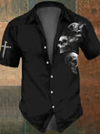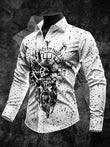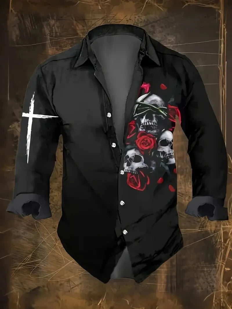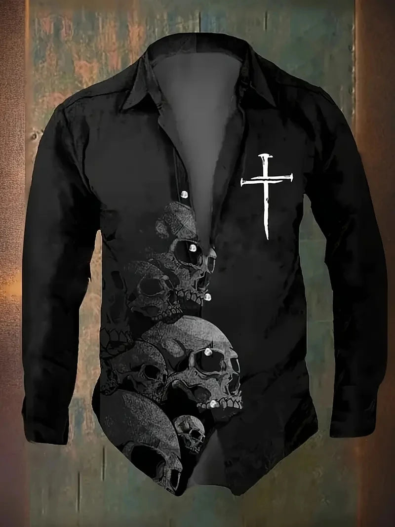 2025 Skull Graphic Print Shirt For Men Autumn New Men's Long Sleeve Collared Shirt Plus Size Casual Button Down Shirts Clothing