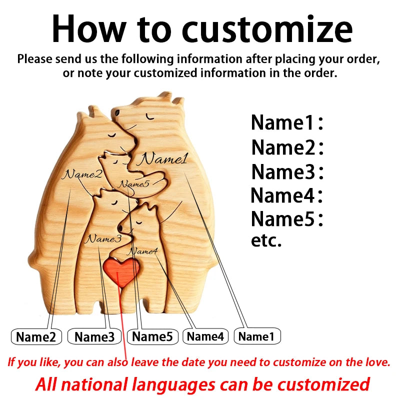 Art Wooden Bear Family Puzzle Personalized Name Custom Home Decor