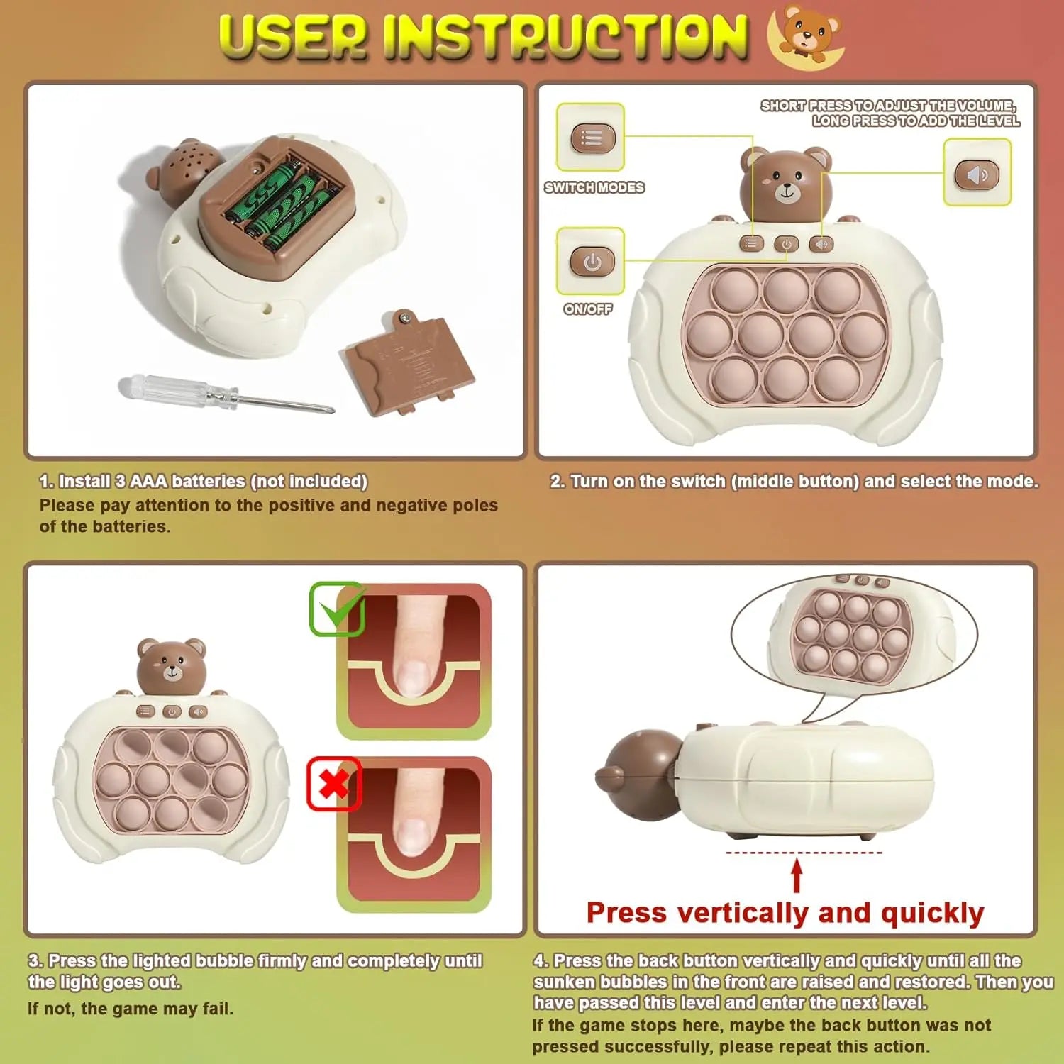 4. Adults can benefit from the stress-relieving effects🙇♀️🙇♂️of these toys as well. The Quick Push Game Console Fidget Stress Relieving Toys are not just for kids! They provide a great way to take a break from work or other stressful activities and focus on something fun and engaging.