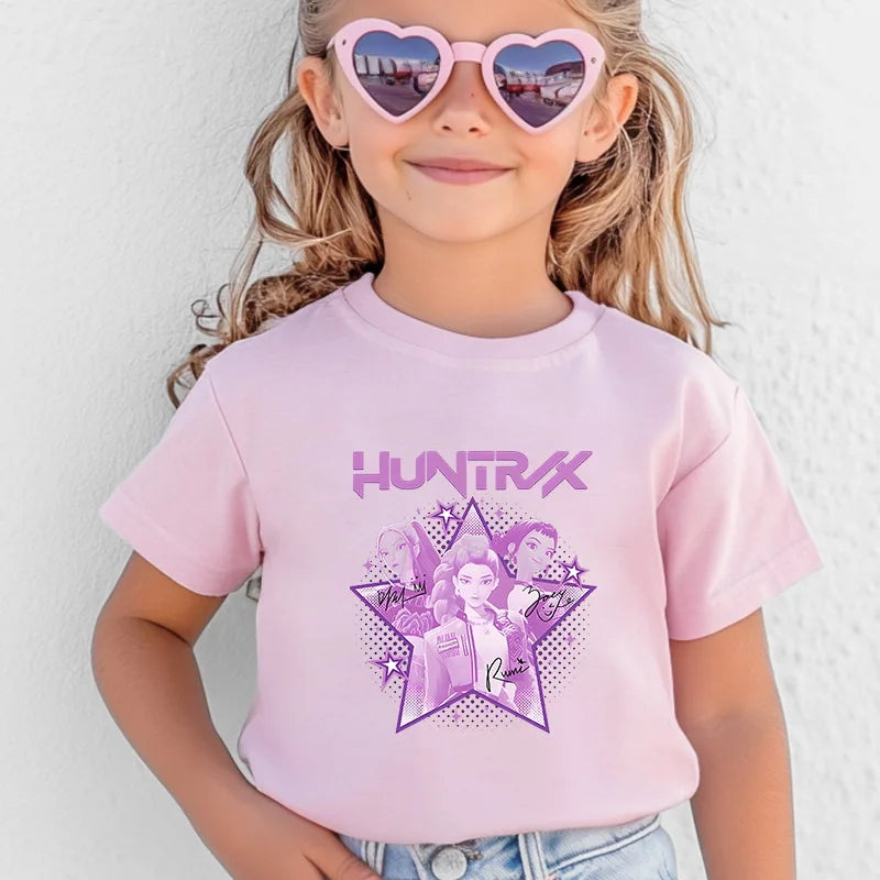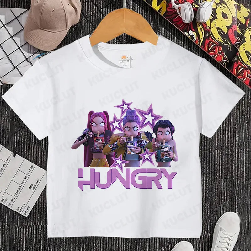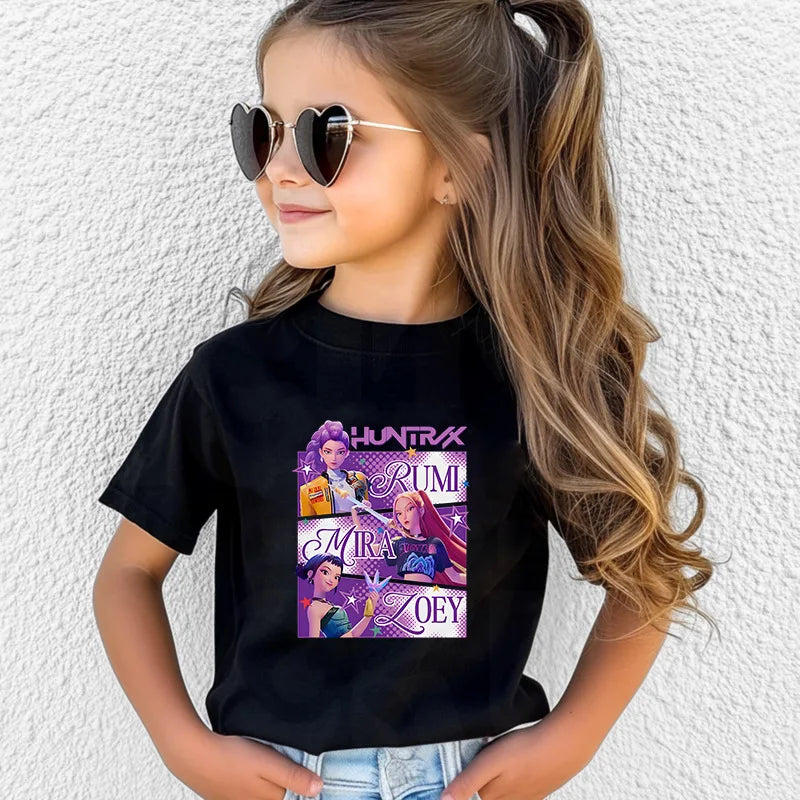Kawaii K-POP Demon Hunters Kids T-shirt Girl Boy Clothes Children Clothing Fashion Tops Cotton Sweet Gift Short Sleeve Costumes