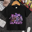 IP Elements: Printed with cartoon characters and "HUNGRY" text