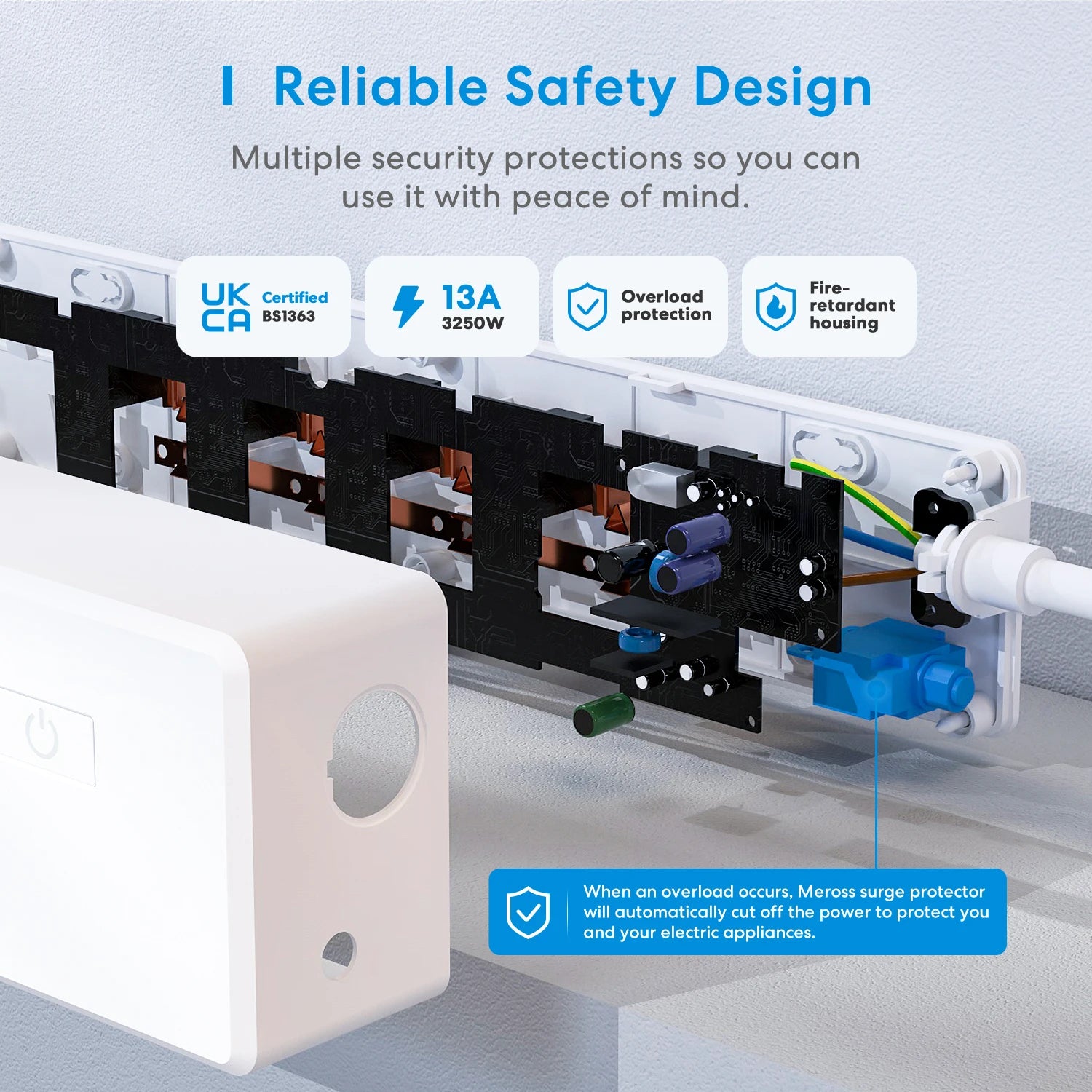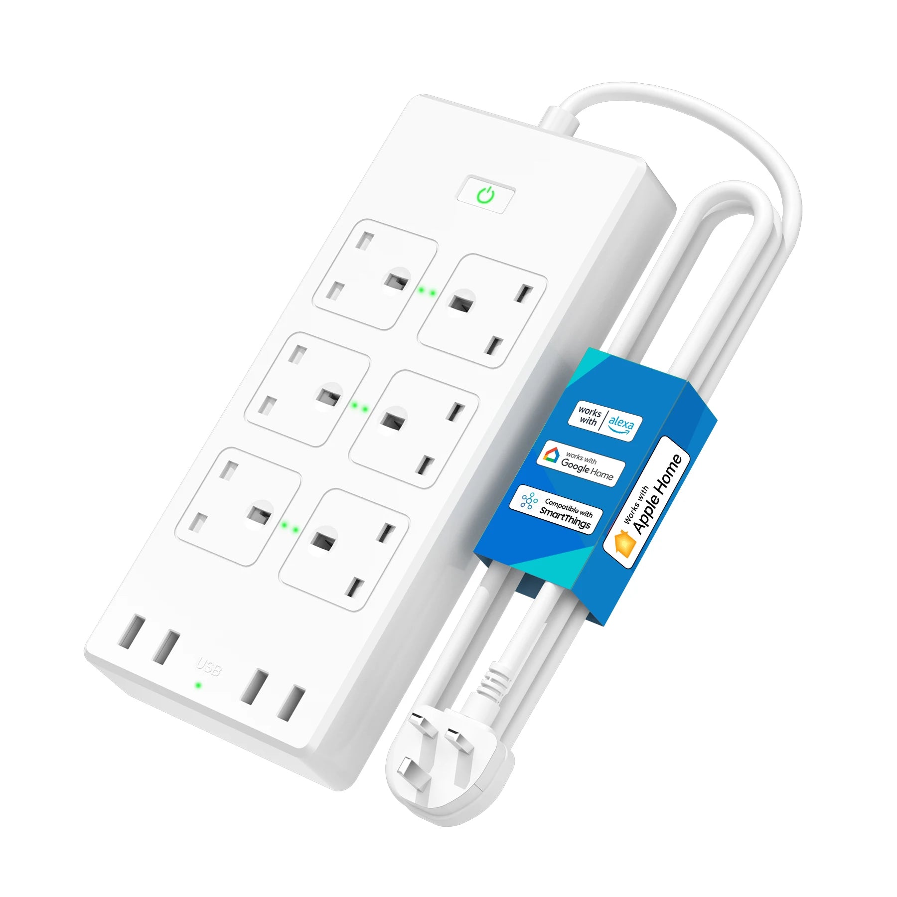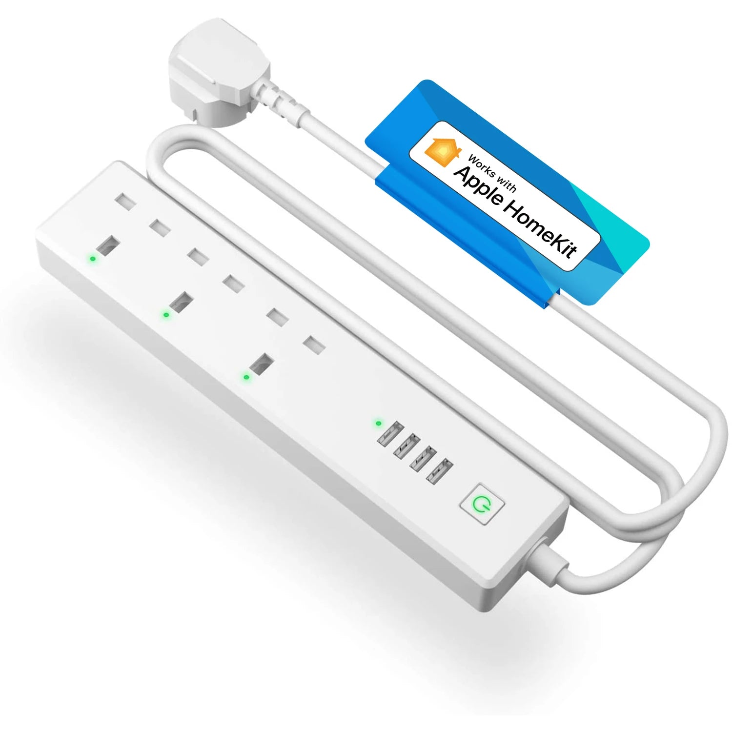 Meross HomeKit Smart Power Strip WiFi Socket Extension UK Outlet with 4 Sockets 4 USB Ports Work with Alexa Google SmartThings