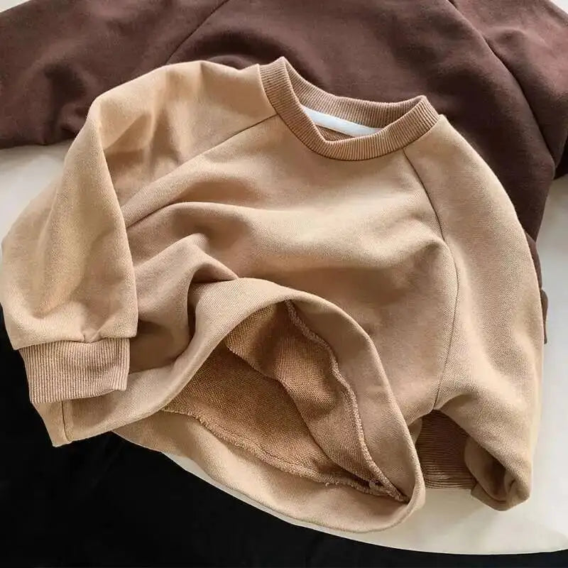 Spring Autumn Children Sweatshirts 1-8Y Boys Cotton Spliced Solid Casual Pullover Tops Korean Toddler Wear For Kids Clothing New