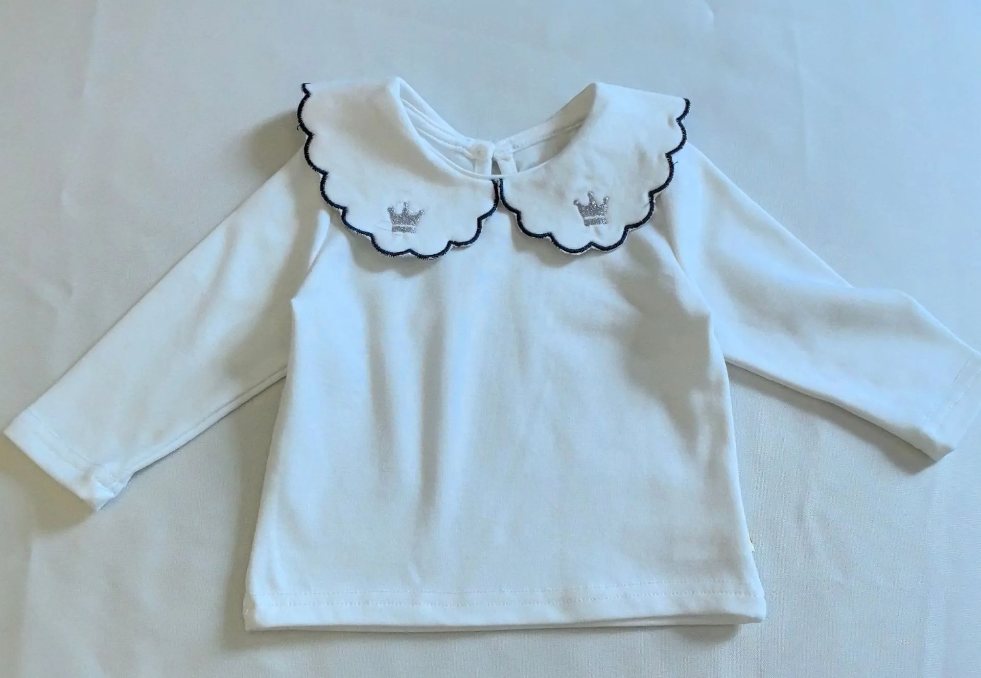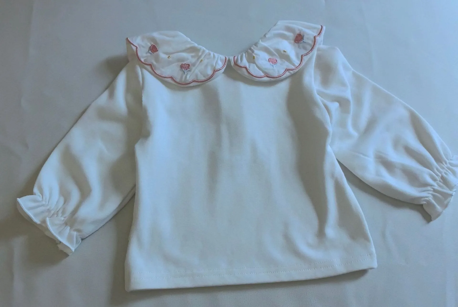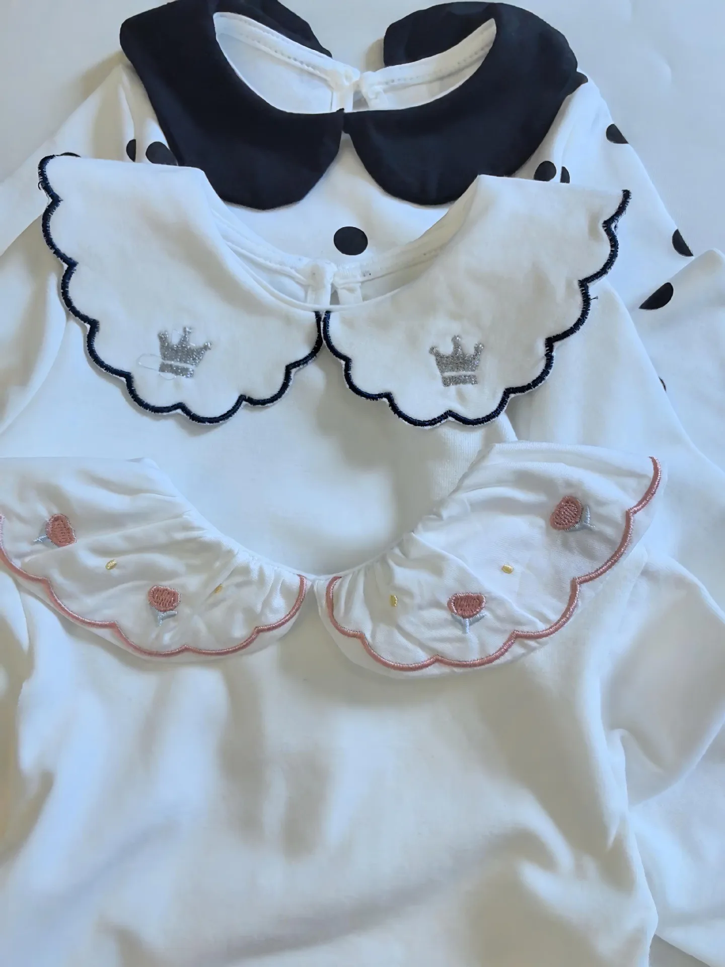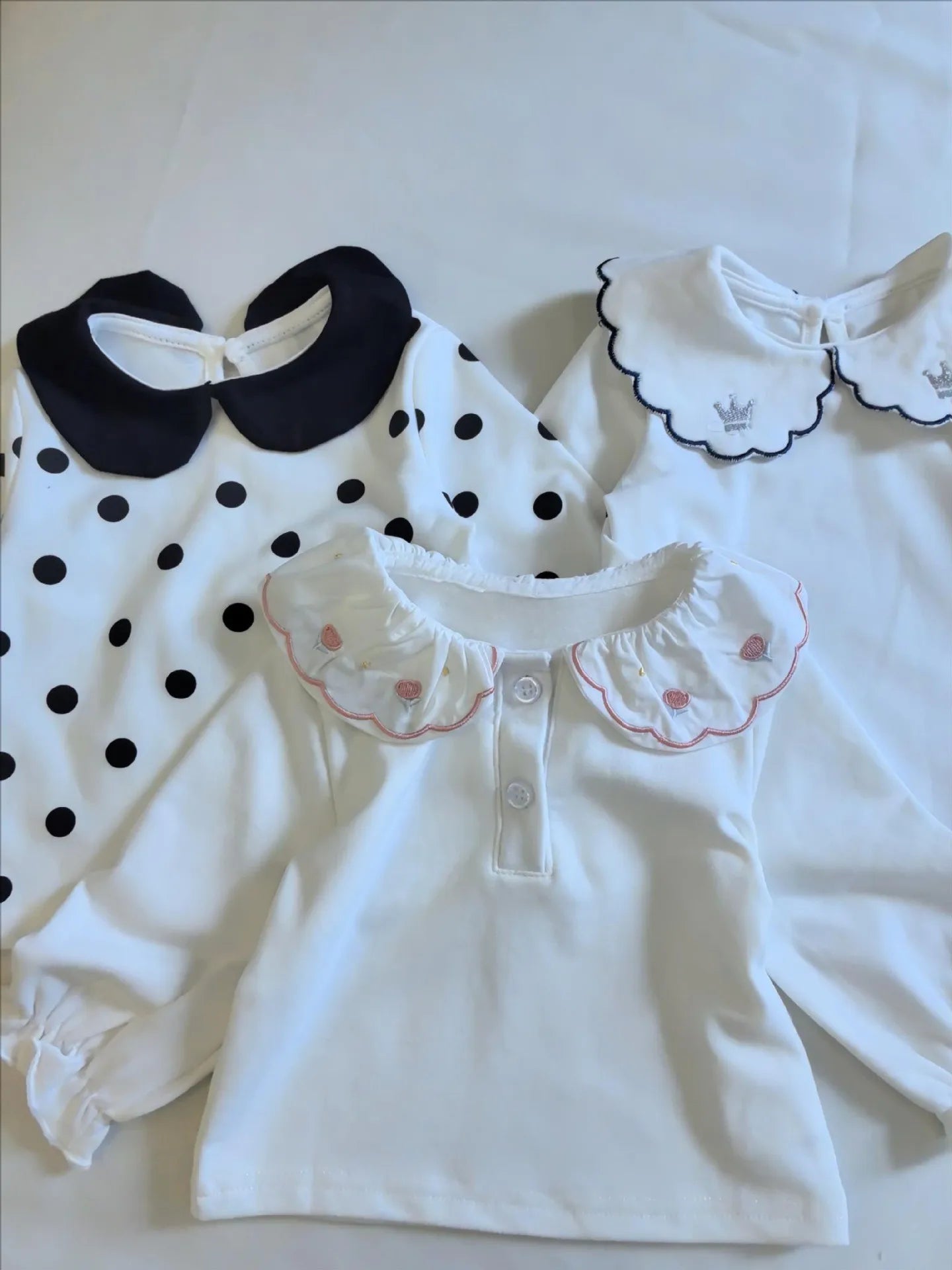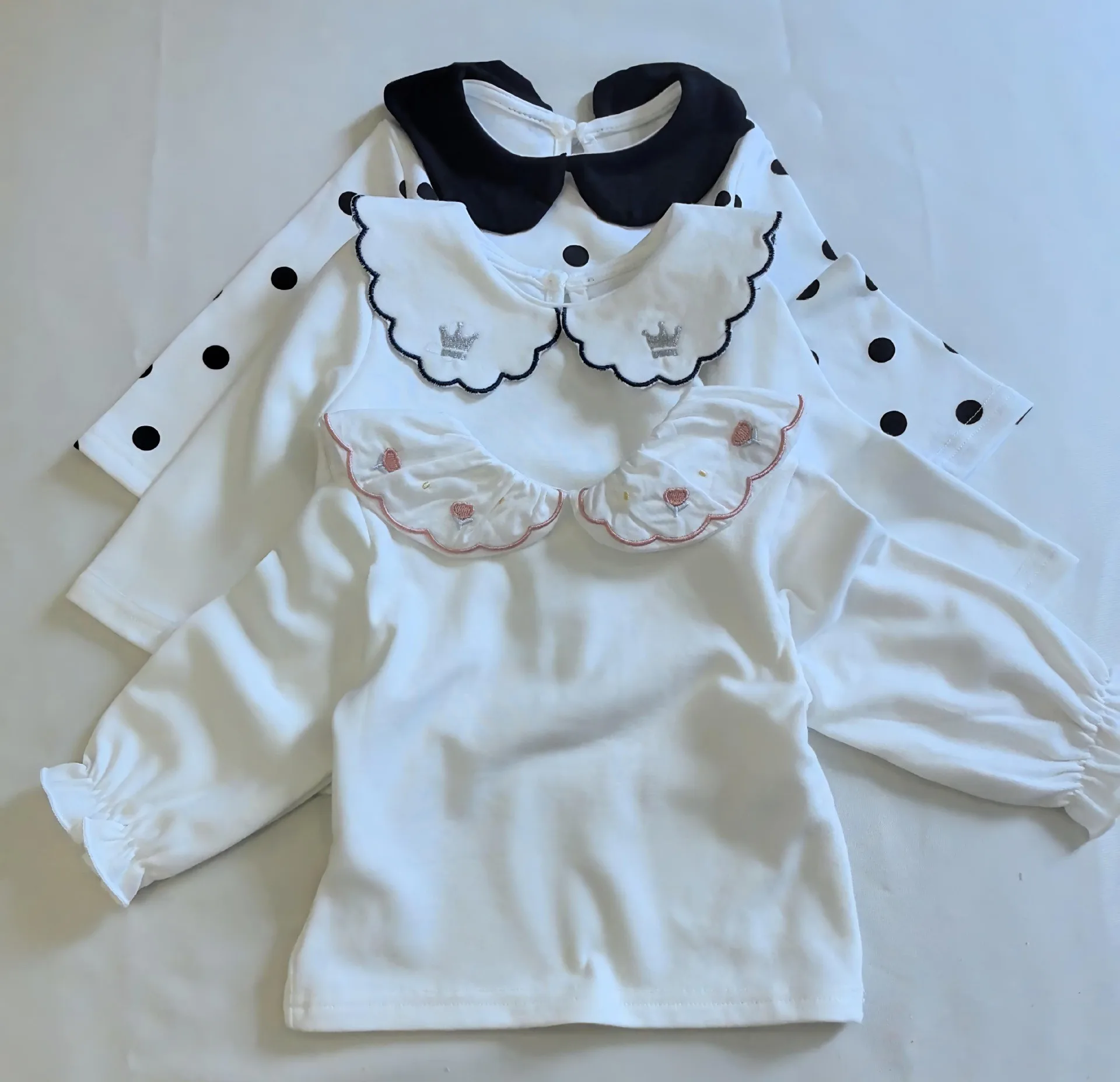 T2698 Korean Style Spring Autumn New Polka Dot Embroidered Ruffle Collar Long Sleeve Girls' Polo Shirt Children's Clothing Top